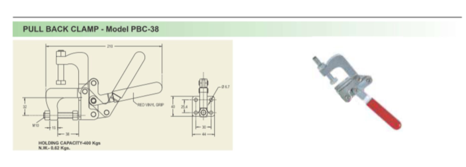 Enhance your industrial operations with the Pull Back Clamp – Model PBC-38, available at Sai Truman Enterprises, Bhosari, Pune. Designed for heavy-duty performance, this robust clamp offers a high holding capacity of up to 400 kg, ensuring firm and secure clamping for welding, machining, and fabrication applications. Its pull-back locking mechanism provides strong reverse clamping action for maximum stability and safety. Manufactured from premium-grade steel with a durable finish, it guarantees long-lasting performance in demanding industrial environments. Visit Sai Truman Enterprises in Bhosari, Pune for reliable, high-quality clamping solutions at competitive prices.
