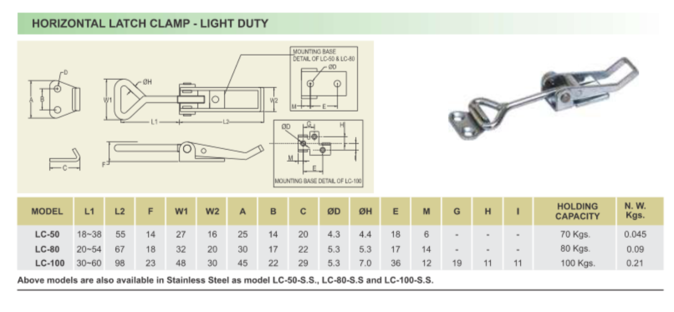 Upgrade your fastening solutions with our high-quality Horizontal Latch Clamp – Light Duty, designed for secure, quick, and repeatable clamping in industrial and workshop applications. At Sai Truman Enterprises in Bhosari, we offer durable clamps with precise dimensions, strong holding capacity, and smooth latch operation for reliable performance. Ideal for jigs, fixtures, automotive work, and fabrication setups, these clamps ensure firm grip with easy release. Built from robust materials, they provide long service life even in demanding environments. Available in multiple models to suit varied load requirements, making them a versatile choice for professionals. Visit Sai Truman Enterprises, Pune, for trusted quality and competitive pricing.