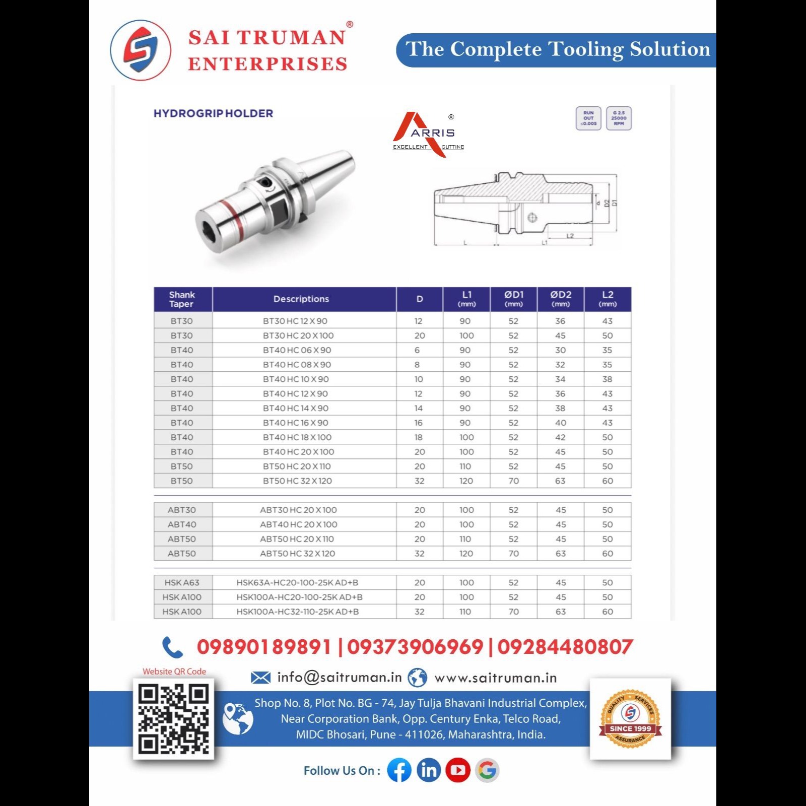 ARE YOU SEACHING FOR HYDROGRIP CHUCK IN PUNE MAHARASHTRA ? SAI TRUMAN ENTERPRISES IS ONE OF THE LEADING STOCKIEST AND SUPPLIERS OF #ARRIS BRAND HYDROGRIP CHUCK AVAILABLE IN ALL SIZES Visit us - www.saitruman.in, www.saitruman.org, Contact- +919890189891, +919373906969, +919284480807 Email - info@saitruman.in, saitruman@gmail.com