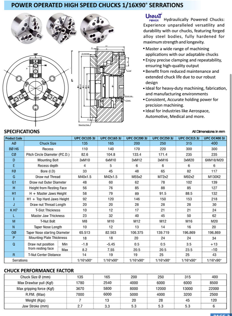 At Sai Truman Enterprises, Bhosari, Pune, we offer premium-quality Hydraulically Powered High-Speed Chucks designed for precision machining and heavy-duty industrial use. These chucks feature robust forged alloy steel construction, ensuring maximum durability and long service life even in demanding environments. Engineered with 1/16 x 90° serrations, they provide superior gripping strength and repeatability for accurate machining results. Our power-operated chucks deliver consistent clamping force, making them ideal for CNC lathes and high-speed applications. With excellent drawbar pull and gripping force, they ensure stable workholding across various machining operations. Available in multiple sizes, these chucks cater to diverse industrial requirements in automotive, aerospace, and manufacturing sectors. The precision design minimizes vibration, improving surface finish and overall productivity. Their low-maintenance construction helps reduce downtime and operational costs for your workshop. These chucks also support a wide range of adaptable jaws, making them versatile for different workpiece sizes and shapes. At Sai Truman Enterprises, we ensure reliable supply and expert guidance to help you select the right chuck for your application. Located in the industrial hub of Bhosari, Pune, we serve local and nationwide clients with high-performance tooling solutions. Upgrade your machining efficiency with our high-speed hydraulic chucks built for accuracy, strength, and long-term reliability.