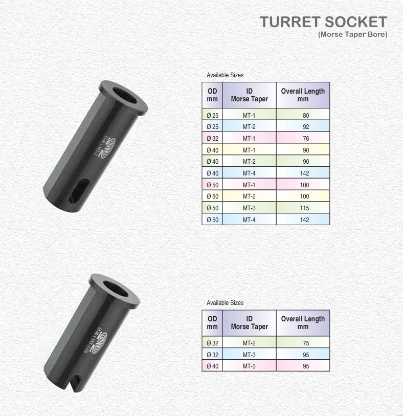 ARE YOU SEARCHING FOR TURNMAX TURRET SOCKET MORSE TAPER BORE N PUNE MAHARASHTA & FARIDABAD HARYANA ? SAI TRUMAN ENTERPRISES ONE THE LEADING STOCKIEST OF TURNMAX TURRET SOCKET MORSE TAPER BORE IN FARIDABAD HARYANA Visit us- www.saitruman.org TURNMAX TURRET SLEEVE MT TYPE TURRET SOCKET MORSE TAPER BORE